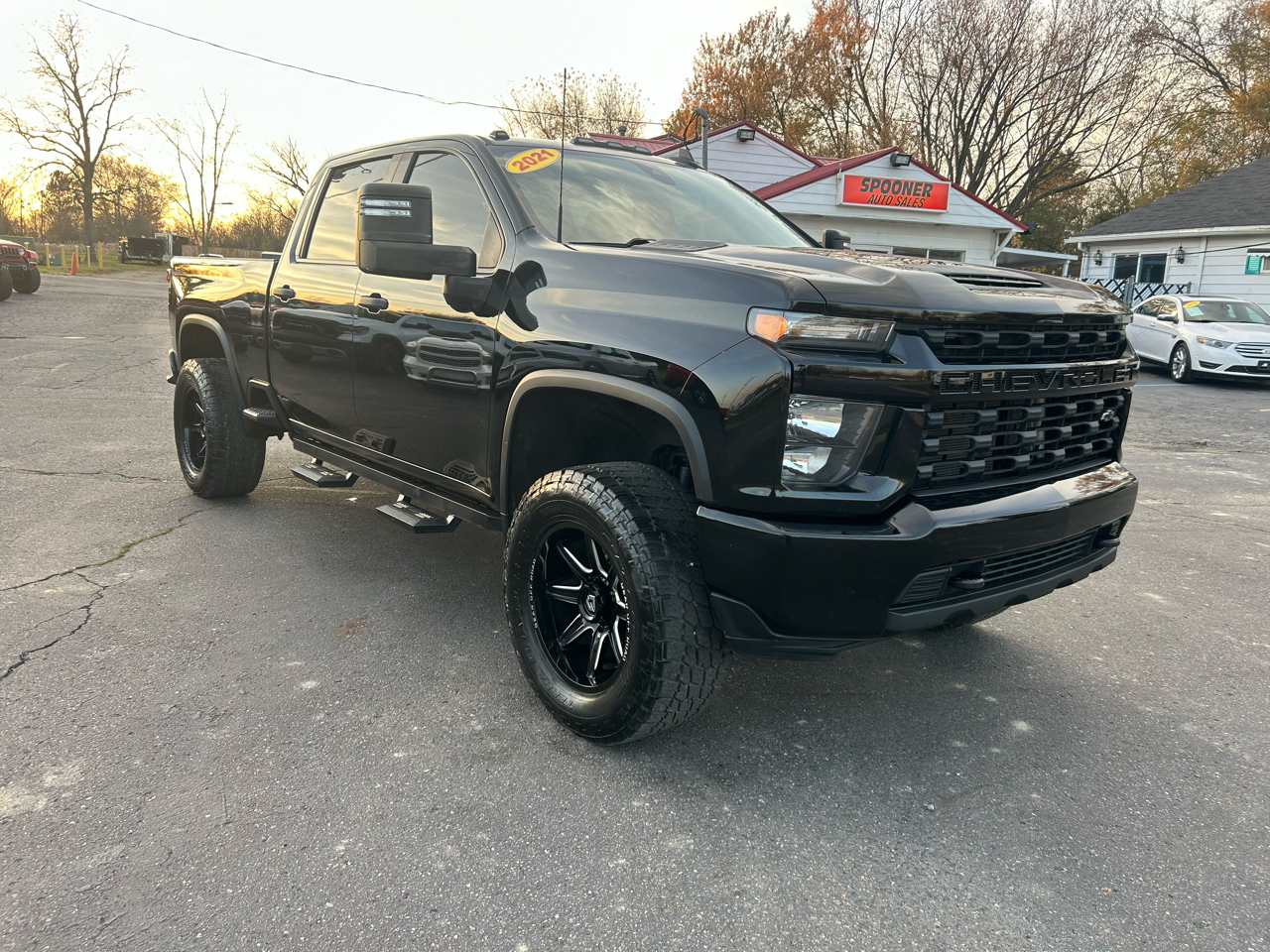 2021 CHEVROLET SILVERADO 2500HD, CREW CAB, CUSTOM PACKAGE, 6.6L V8, AUTOMATIC 6-SPEED TRANSMISSION, 4WD WITH ON DEMAND 4WD, FORWARD COLLISION ALERT, BLIND SPOT WARNING, TOWING PACKAGE, TOW/HAUL, TRAILER BRAKE CONTROLLER, TOW MIRRORS, SPRAY IN BED LINER, SNOW PLOW PREP/CAMPER PACKAGE, SUSPENSION PACKAGE, POWER TAILGATE, RUNNING BOARDS, TINTED WINDOWS, CLOTH INTERIOR, 7" DIAG COLOR TOUCHSCREEN, MULTI-FUNCTION DISPLAY, CAR CONNECT, REARVIEW CAMERA , APPLE CARPLAY, ANDROID AUTO, BLUETOOTH, POWER WINDOWS, POWER LOCKS, STEERING WHEEL MOUNTED CONTROLS, CRUISE CONTROL, REMOTE START, KEYLESS ENTRY, GOOD TIRES, AFTERMARKET 20" WHEELS, CLAN CARFAX, CLEAN TITLE, 64K MILES