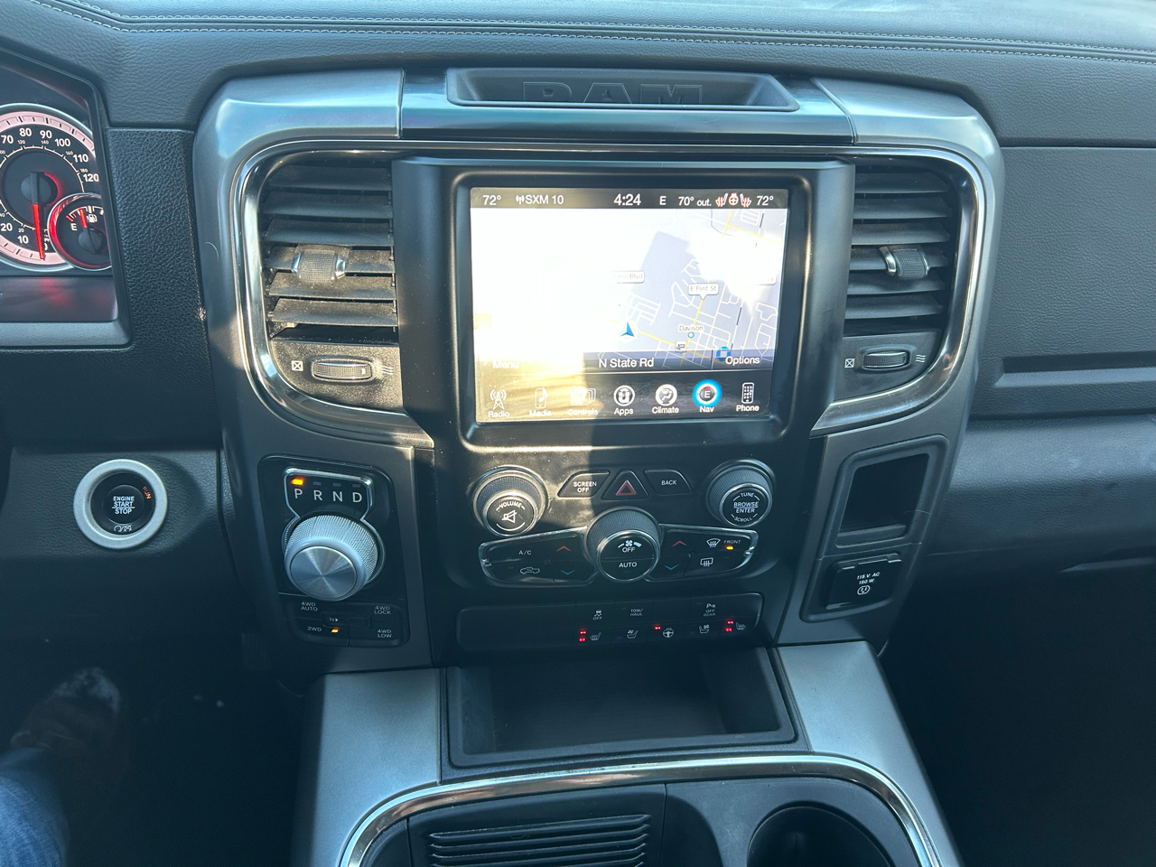 2017 RAM 1500 SPORT CREW CAB, 5.7L HEMI VVT V8 w/ Fuel Saver, 8-Speed TorqueFlite Automatic Transmission, 4x4, Tow/Haul, Spray In Bed Liner, Hard Folding Tonneau Cover, 5.6ft Bed Length, Sport Performance Hood, Rear Power Sliding Rear Window, Rear Parking Sensors, Customer Preferred Package 26L, Black Ram 1500 Sport Group, Convenience Group, A/C w/ dual-zone auto temp control, Uconnect 8.4-in SXM/Hands-free/NAV, Bluetooth, GPS Navigation, Rear Back-Up Camera, 9 Alpine speakers with subwoofer, Power adjustable pedals, Leather Seats, Heated/Cooled Front Seats, Power 10-way driver/6-way pass seats, Heated Steering Wheel, Keyless Enter ’n Go w/ push start, Tinted Windows, Power Windows, Power Locks, Sterring Wheel Mounted Controls, Cruise Control, Remote Start, Aftermarket Wheels,